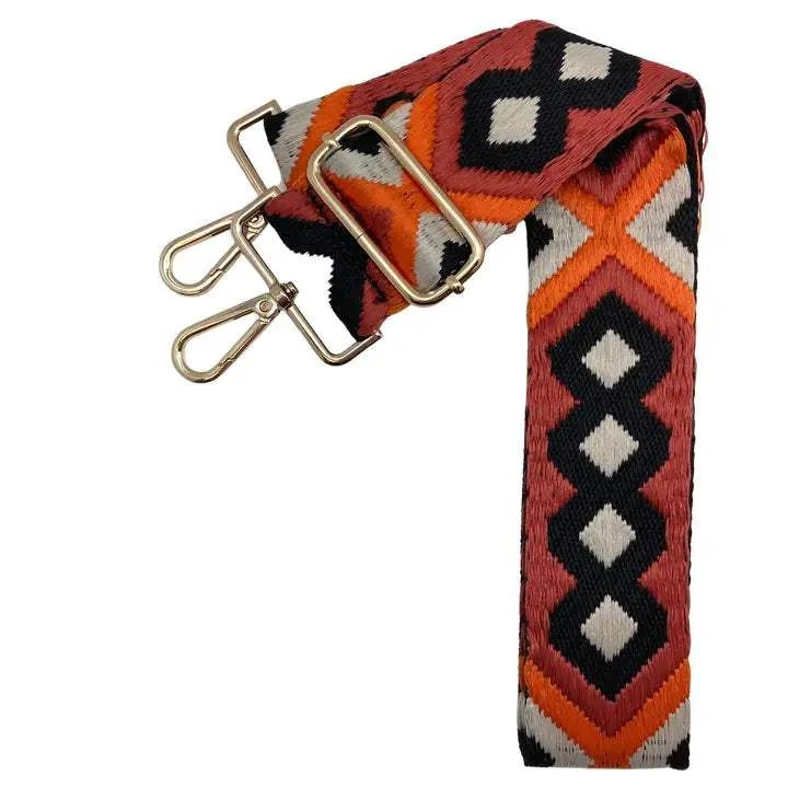 The Boho Strap is one our our largest and best selling collections- a loose weave pattered in X's and diamonds in many colors gives it a Bohemian vibe. The back of the strap is either solid cream or black. Width: 2 inches Adjustable Length: 30 to 53+/- inches