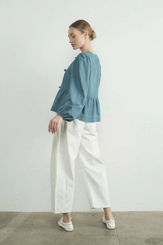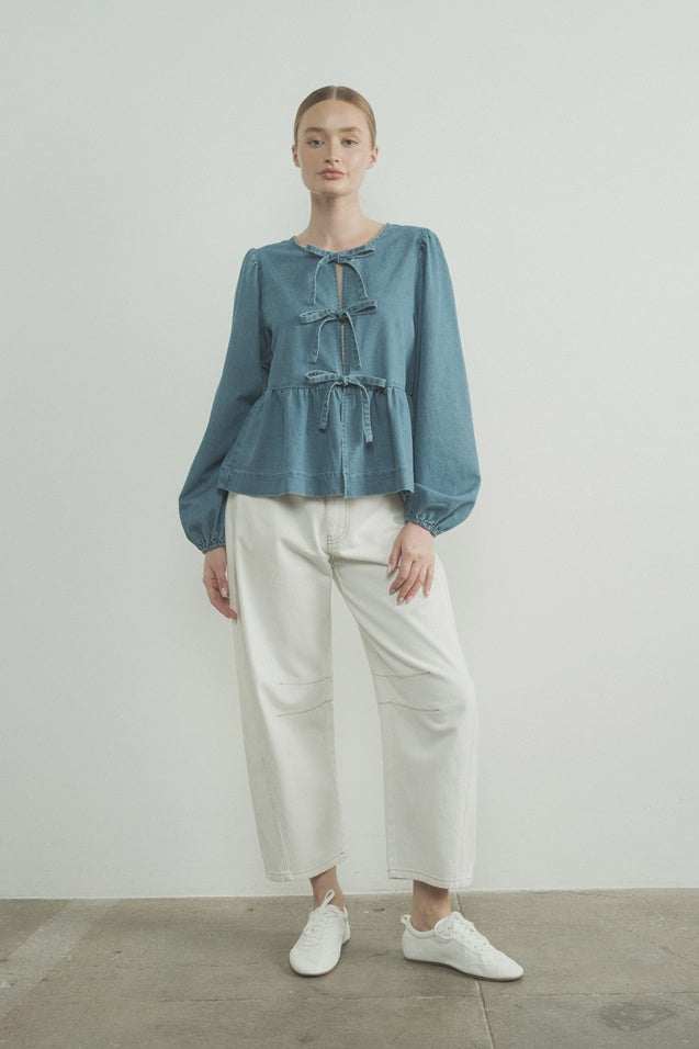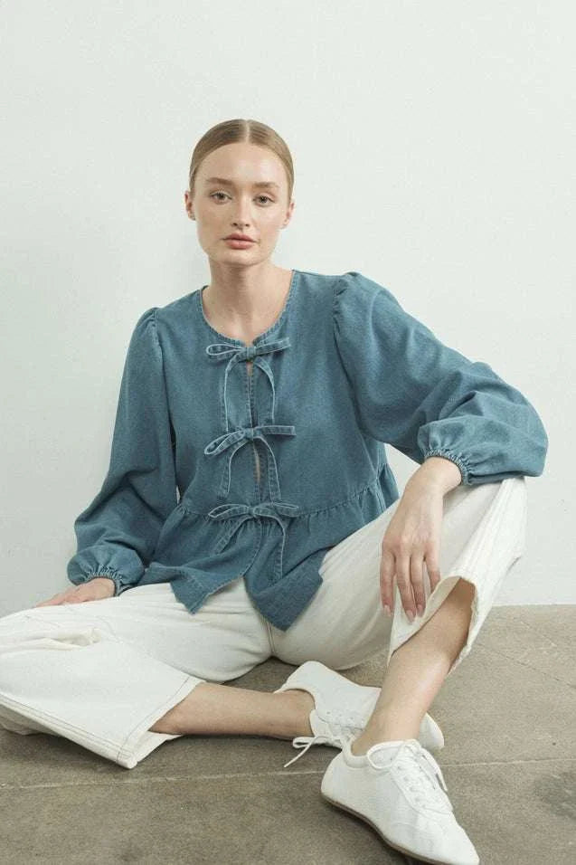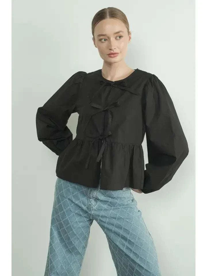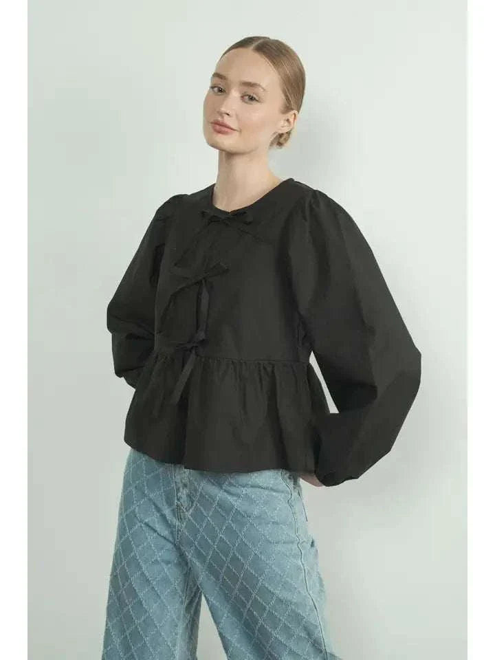 Designed with a flattering, slightly loose fit, the Bow Tie Blouse drapes beautifully over the body, offering both elegance and ease of movement. Its timeless silhouette pairs effortlessly with a variety of bottoms—from tailored trousers and skirts to casual jeans or leggings—making it a wardrobe staple that can easily transition from day to night.
