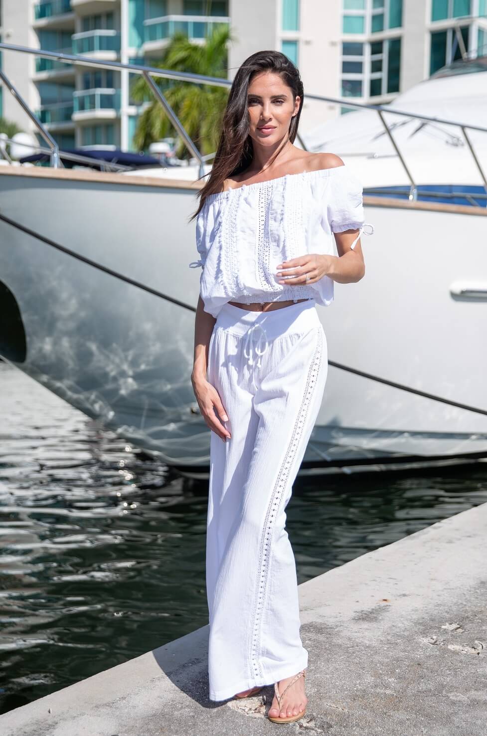 S E A S I C K women’s Long Pants. These comfortable pants feature a beautiful embroidery pattern on the sides of the legs, with a relaxed pant bottom. These stylish pants are made from the finest Peruvian Pima Cotton. Soft, and comfortable with a breathable relaxed fit.