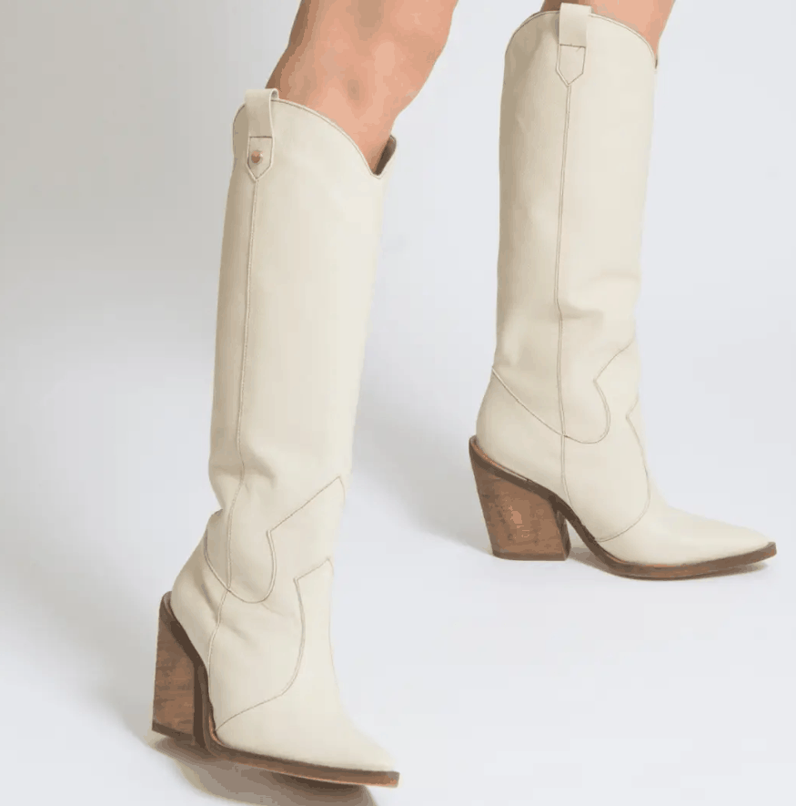 Macao Western Boots Get ready for the sweater weather with our Macao boots in a beautiful ivory leather. They pair perfectly with an oversized sweater dress, add a belt at the waist for a sleek and elevated look. Also pairs well with jeans and a fun blazer! Macao Western Boots