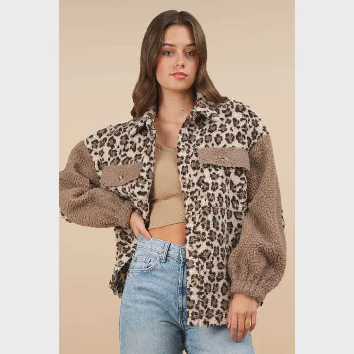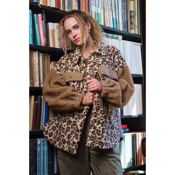 Stay warm and stylish this season with our Oversized Leopard Print Fleece Jacket. Made from soft and cozy fleece, this jacket features a bold and eye-catching leopard print. Perfect for adding a touch of wild to any outfit, while keeping you warm and comfortable.