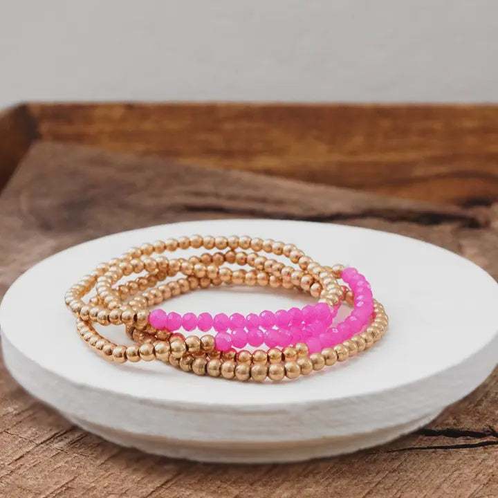 Colorful bracelet stack Small Worn Gold tone Glass beads