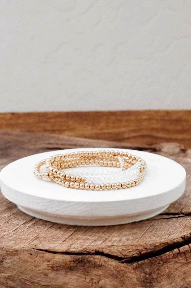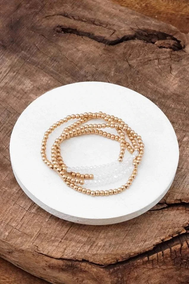 Small Worn Gold tone and Glass beads bracelet stack of 4 bracelets