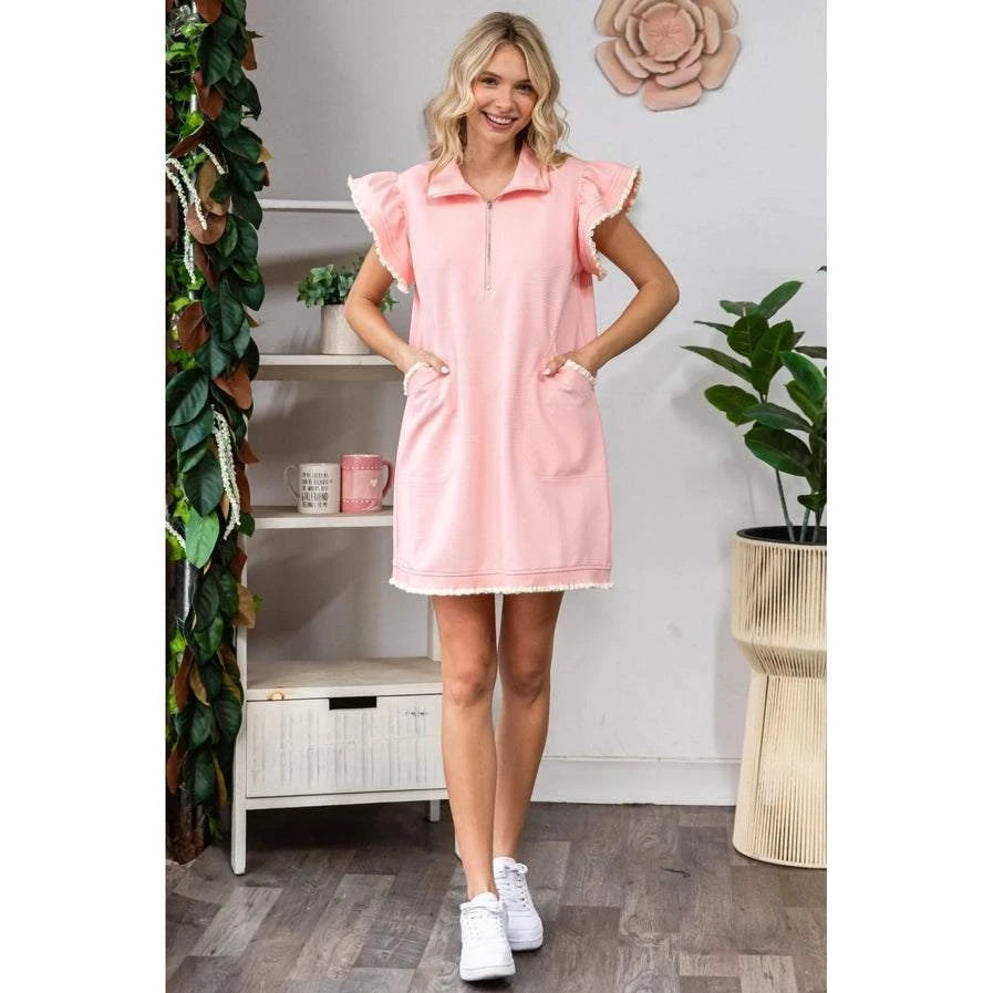 Elevate your wardrobe with the Tina Ruffle Sleeve Dress! This gorgeous dress features beautiful ruffle sleeves that add movement and flair to your look. Perfect for any occasion, it will make you feel confident and stylish. Make a statement and stand out in this must-have dress!