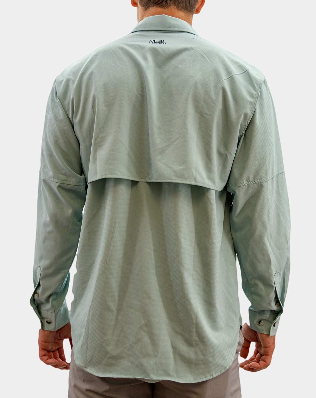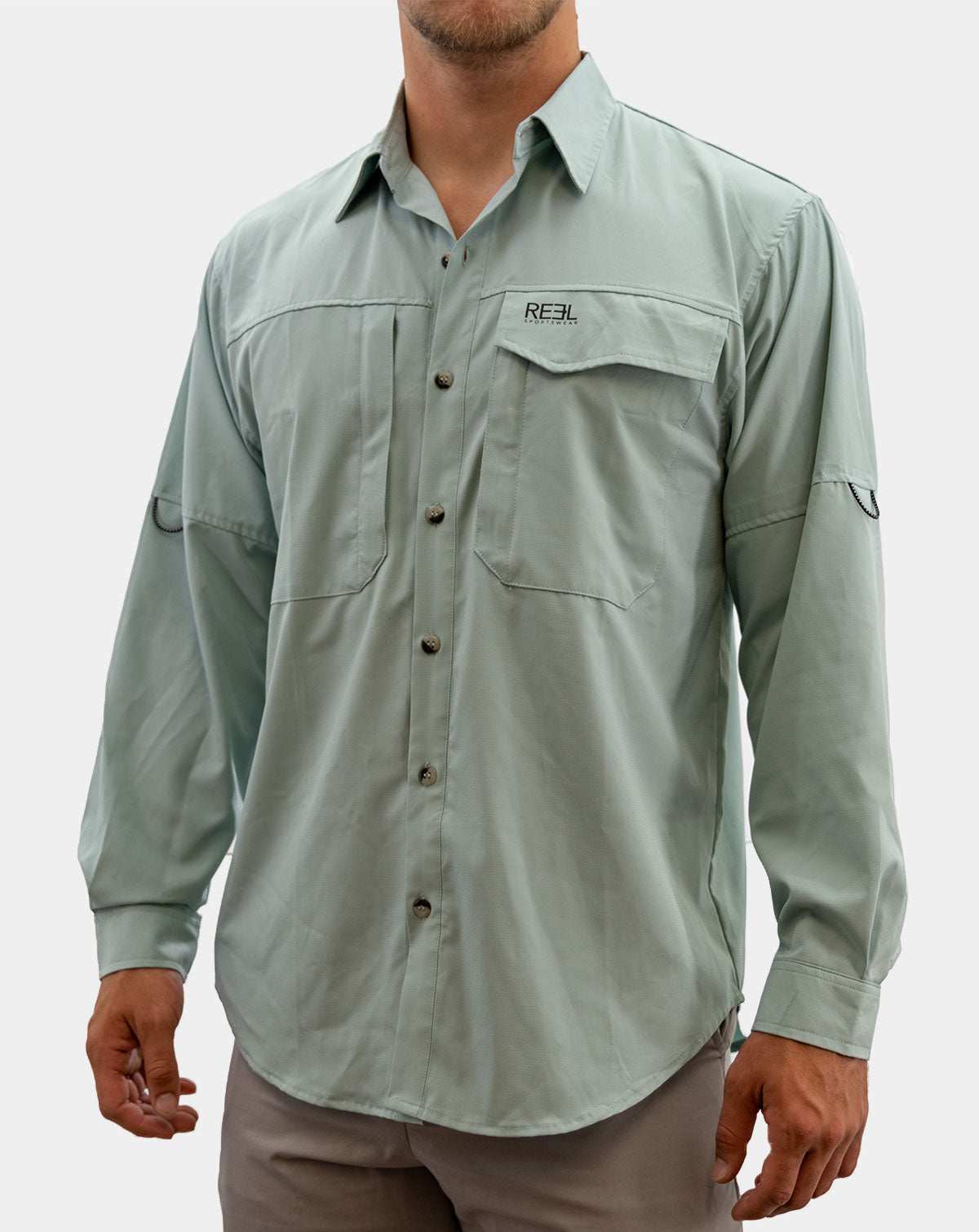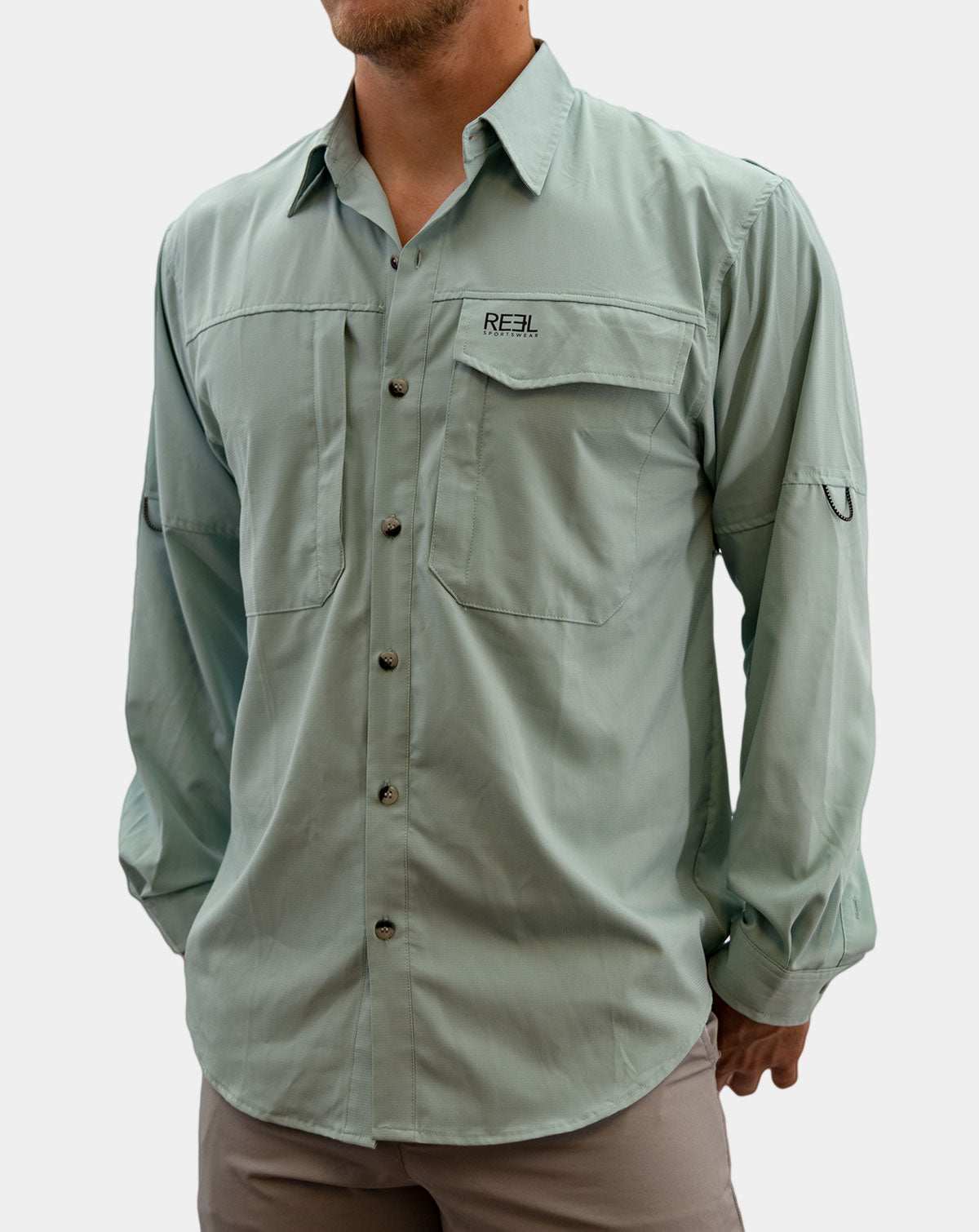 Don't overlook this casual long-sleeve fishing button-down shirt. Constructed with lightweight poly/spandex fabric, the Up River button-down features rear venting that helps you stay cool in sticky situations. Built-in UPF 50+ sun protection shields you from harmful UV rays and odor-resistant technology defends against the afternoon funk. Hidden dual front pockets offer convenient storage for terminal tackle and other miscellaneous items. This timeless woven is your new wingman both on and off the water. FINAL SALE